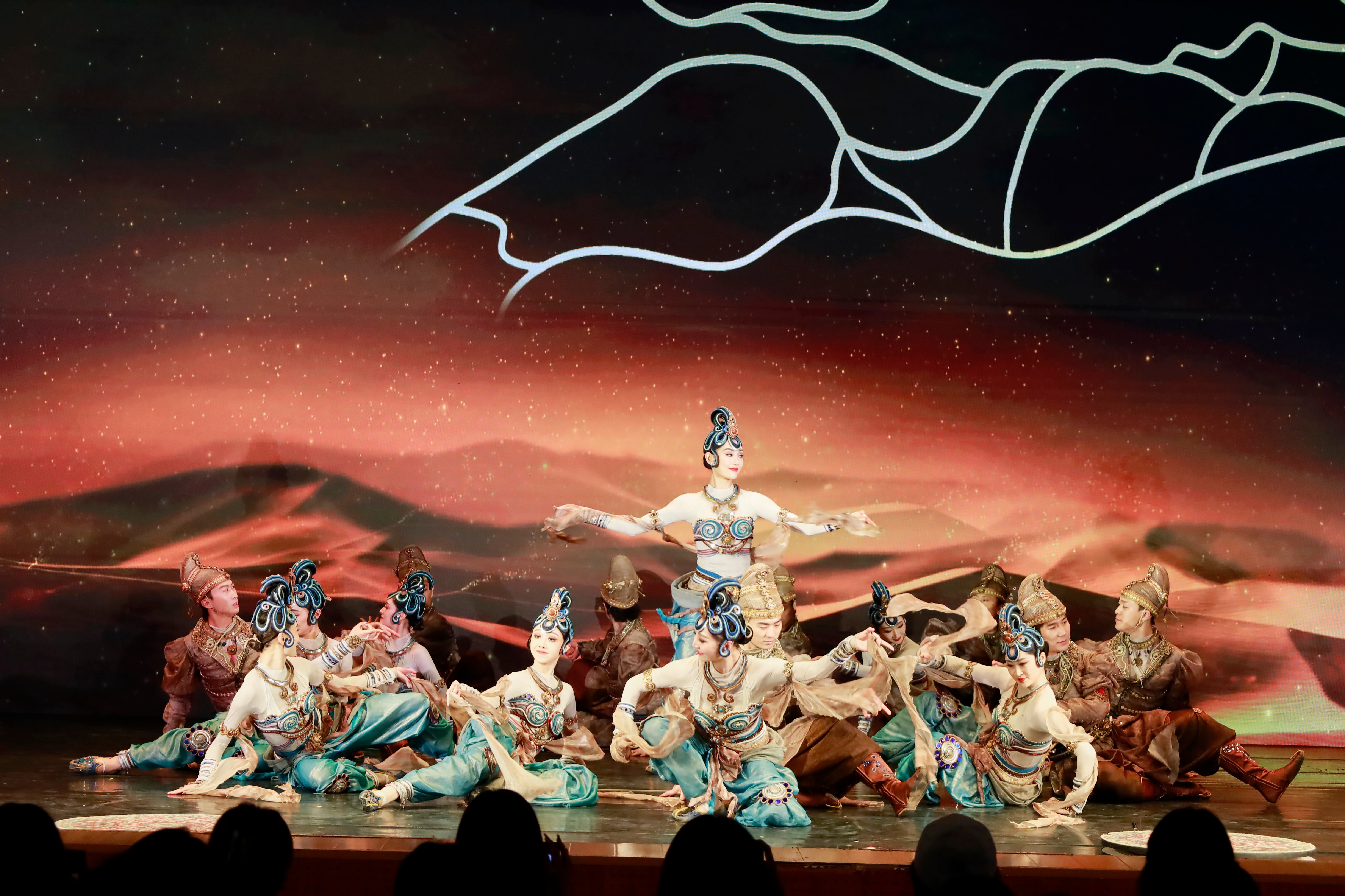喚醒沉睡記憶,重現(xiàn)盛世樂(lè)舞。群舞《絲路·胡旋》美輪美奐,舞者們用曼妙熱烈的旋轉(zhuǎn)與精湛的舞姿,再現(xiàn)了古絲綢之路的繁華盛景,用藝術(shù)之美詮釋了絲路精神與文化交融的獨(dú)特魅力。